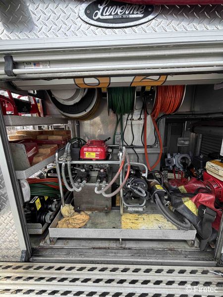 | Equipment included in the Sale | Honda gas powered Hurst Hyd Power Unit (mounted, 5000 psi) (2) Hurst reels 1/100' hose, Hurst 5000 psi tools including: combination, cutter, spreader, T41 ram, T59 ram. Portable gas powered Simo Unit, 2000' of 4" hose, Harrison Hyd 10kw generator, Akron Master Stream w/base & tips. |