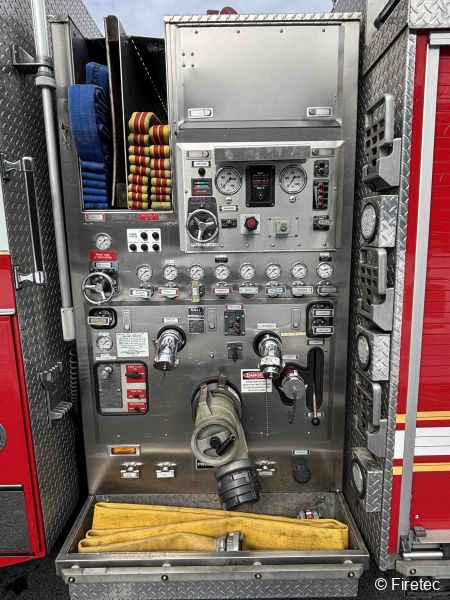 | Other Information | Foam system w/50 gal tank and dedicated line (front bumper), (4) 10' x 6" hard suction, hosebed cover, scene lights, 24', 14' & 10' ladders, pike/hook, hand lights, 16" fan, warning lights, lightbar and siren Pump Cert: July 2025 |