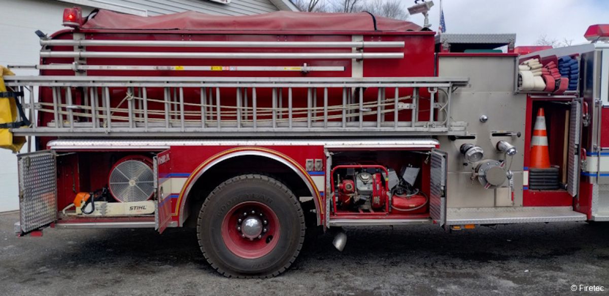 | Equipment included in the Sale | Currently in service but readily available for sale! 3 SCBA seats, deck gun, generator, ladders, suction hose, hose bed cover,newer tires, floor mats in compts., scene lights, emergency lighting, siren. Cascade available separately. State Inspection good through March 2027. |