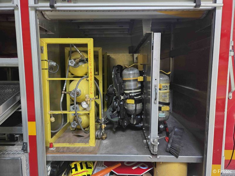 | Equipment included in the Sale | 4500psi cascade w/bottles, 6 scba holder slide-out, scba filling chamber, 5kw generator, (3) 220v lights - 2 mounted, 1 tri-pod, 4 big slide out shelves, 2 large slide out tool racks, (2) extrication hose reels (no tools), large toolbox chest on top of box, on demand chains and more. |